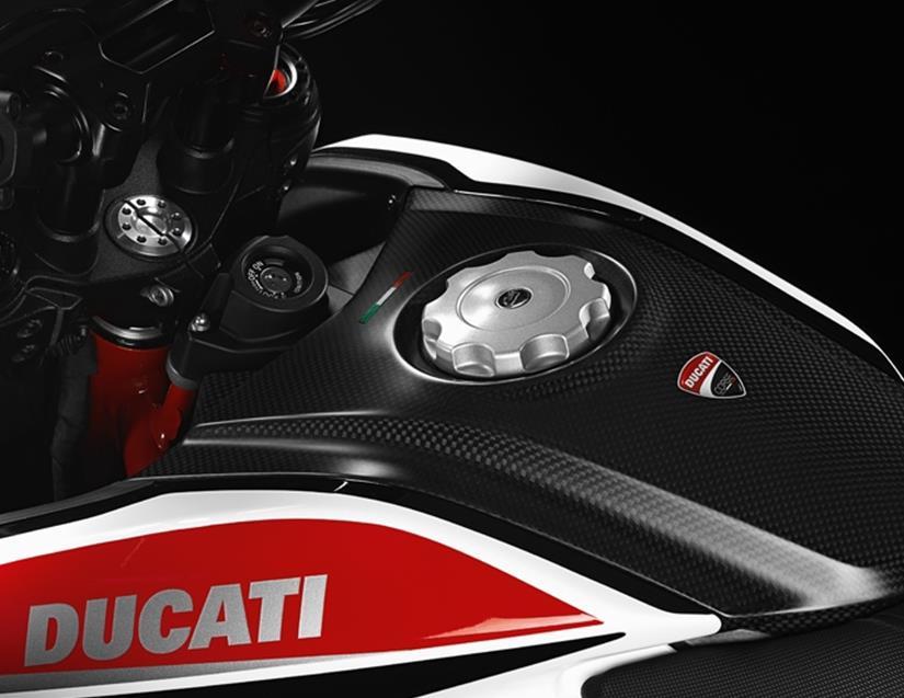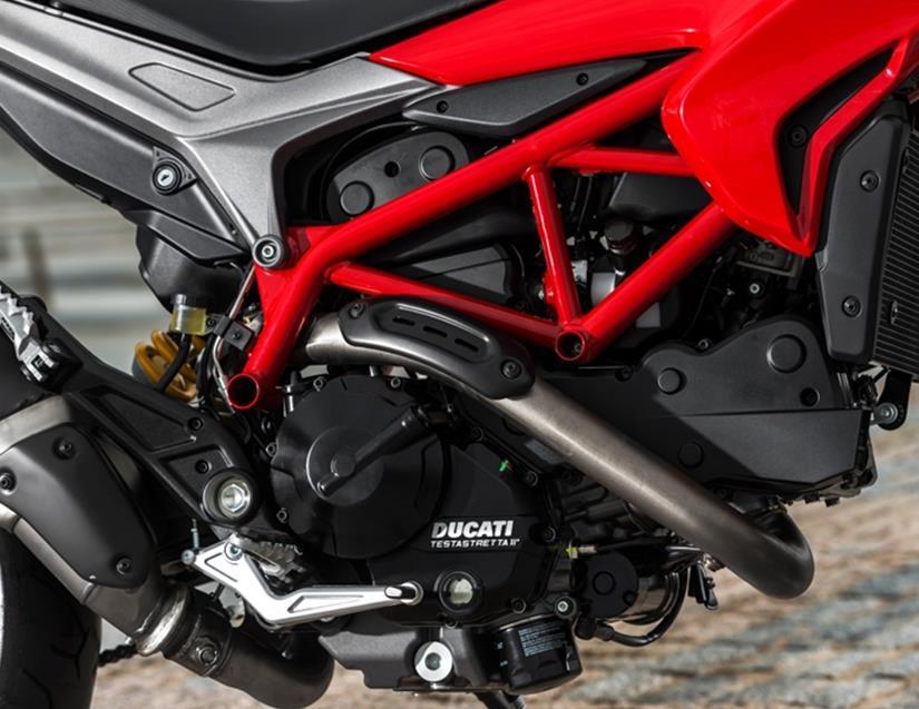 Atualizada com o novo motor 821 de 4 válvulas e refrigeração líquida, vem com um salto de potência considerável sobre o antigo 796 que ainda equipa a Monster. O V2 anterior, ainda da geração de 2 válvulas com refrigeração a ar, produzia 81 cv e torque de 7,7 kgf.m, contra 110 cv e 9,1 kgf.m do atual. Outra evolução significativa sobre a Hyper 796 é o pacote de assistência eletrônica que inclui seleções de modo de pilotagem, mapas de entrega de potência e intensidade de atuação do ABS e do controle de tração.