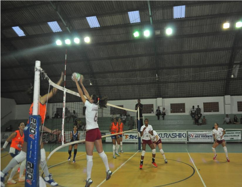 Foto (vôlei): Lance da partida entre Leme e Jundiaí, válida pelo Campeonato Paulista da Primeira Divisão.