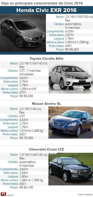 Segundo a montadora, a opção intermediária deve representar 84% do total de Civic em 2015. A EXR, que conta com o equipamento, terá fatia de 11%, e a básica, LXS, completará os 5% restantes.