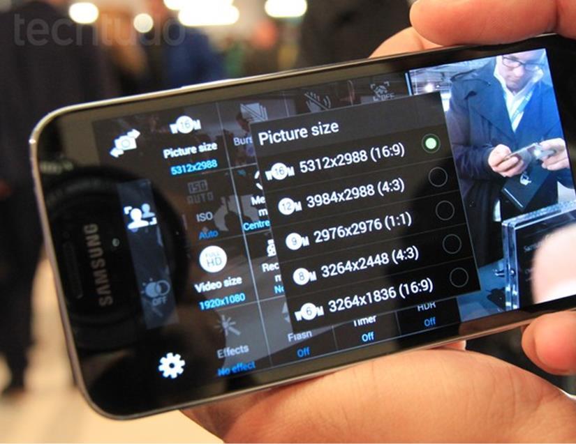 A câmera ficou mais rápida e ganhou algumas novas funcionalidades. São 16 megapixels na câmera traseira e 2 megapixels na frontal. A lente é acompanhada por um potente flash LED, localizado logo abaixo dela. Além do punhado de recursos já vistos no S4, como o dual camera e o de foto com voz, o S5 tem um modo de foco seletivo e um HDR que funciona para vídeos. Testamos o foco seletivo, e o resultado foi pouco impressionante.